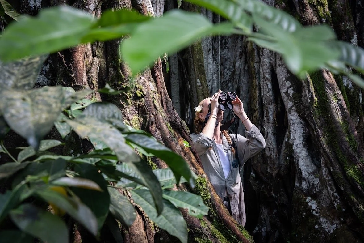The days are filled with incredibly diverse explorations, jumping in a car for unique game drives, kayaking down the river among birds and mammals living on the river beds, endless learning opportunities and well deserved rest. The evenings are packed with good food and stories around the fire with the guides, their endless knowledge and the many tales the jungle has to offer in the background. Included in the week are 2 gorilla permits, meaning we will have 2 mornings tracking gorillas. Each sighting is limited to 1 hour to limit our impact on the families and preserve their natural behaviors.