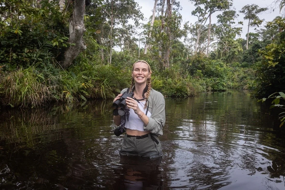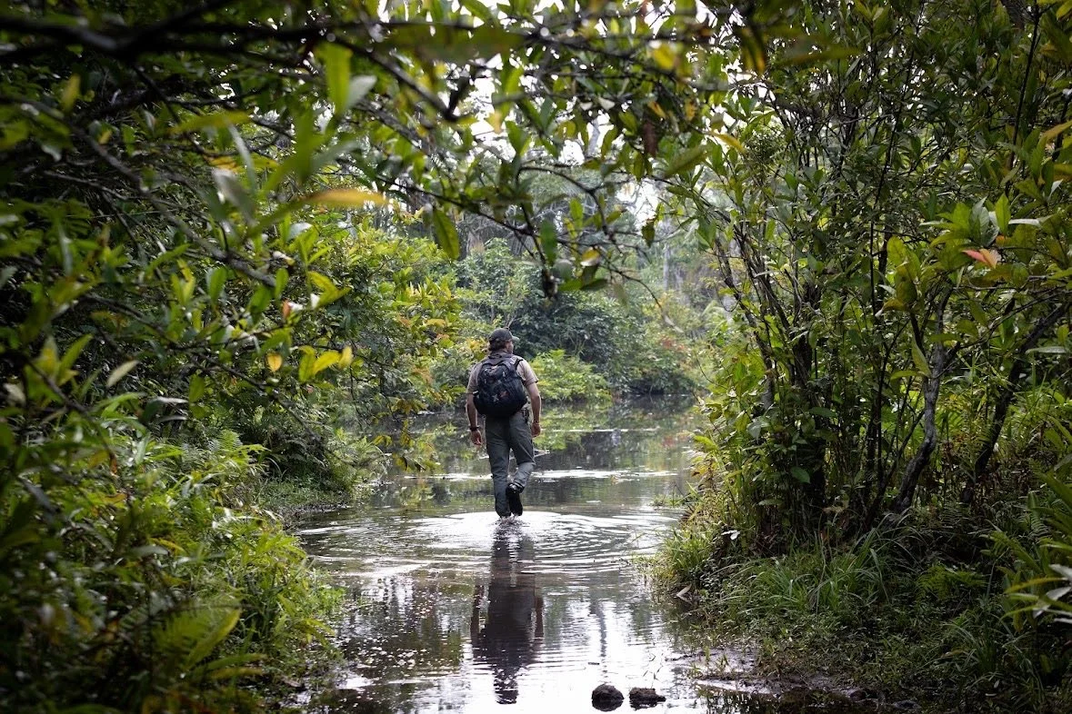 - Research: Backing scientific endeavors in the Congo Basin — through our founder’s support of the research station at Ngaga, initiated by renowned primatologist Magdalena Bermejo, and with partners such as African Parks Network — deepens our understanding of biodiversity and helps protect threatened species. We have established an interdisciplinary research network involving various universities contributing to conservation research in Africa. With the goal of building the next generation of Congolese scientists, Dr. Bermejo supervises graduate students from the University of Brazzaville.